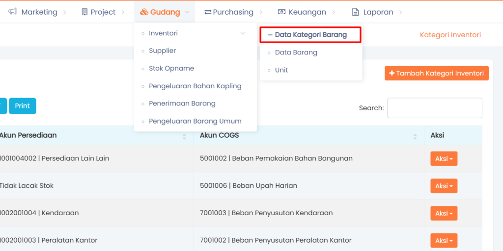 Pilih menu Inventori, lalu klik Data Kategori Barang, kemudian pada halaman baru Data Kategori Barang lahan klik Tambah Kategori Barang